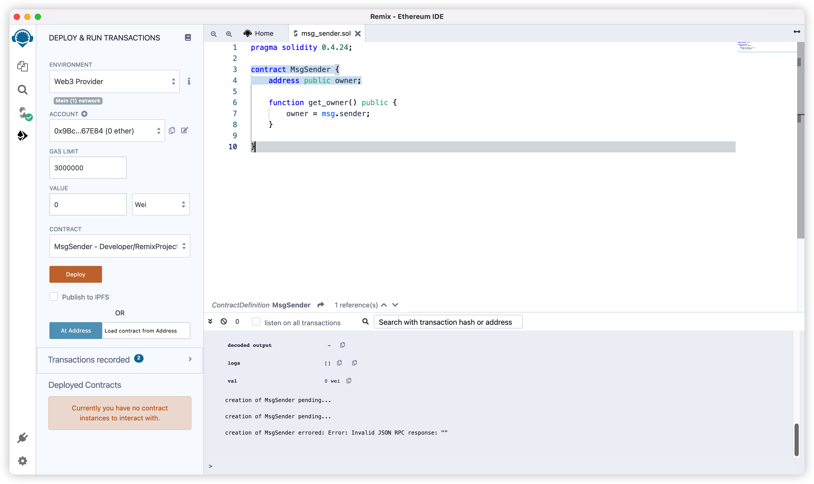 部署合约,可能出现的错误: