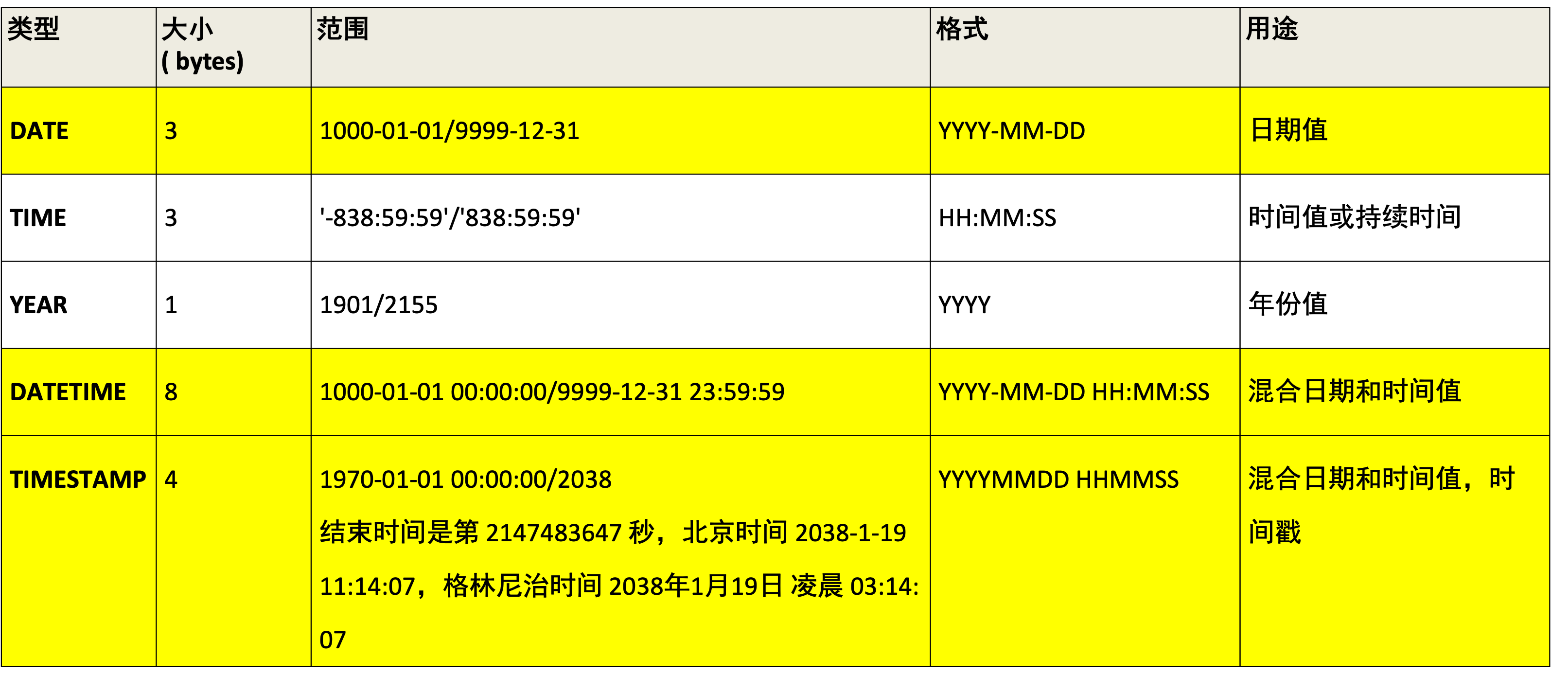 日期和时间类型